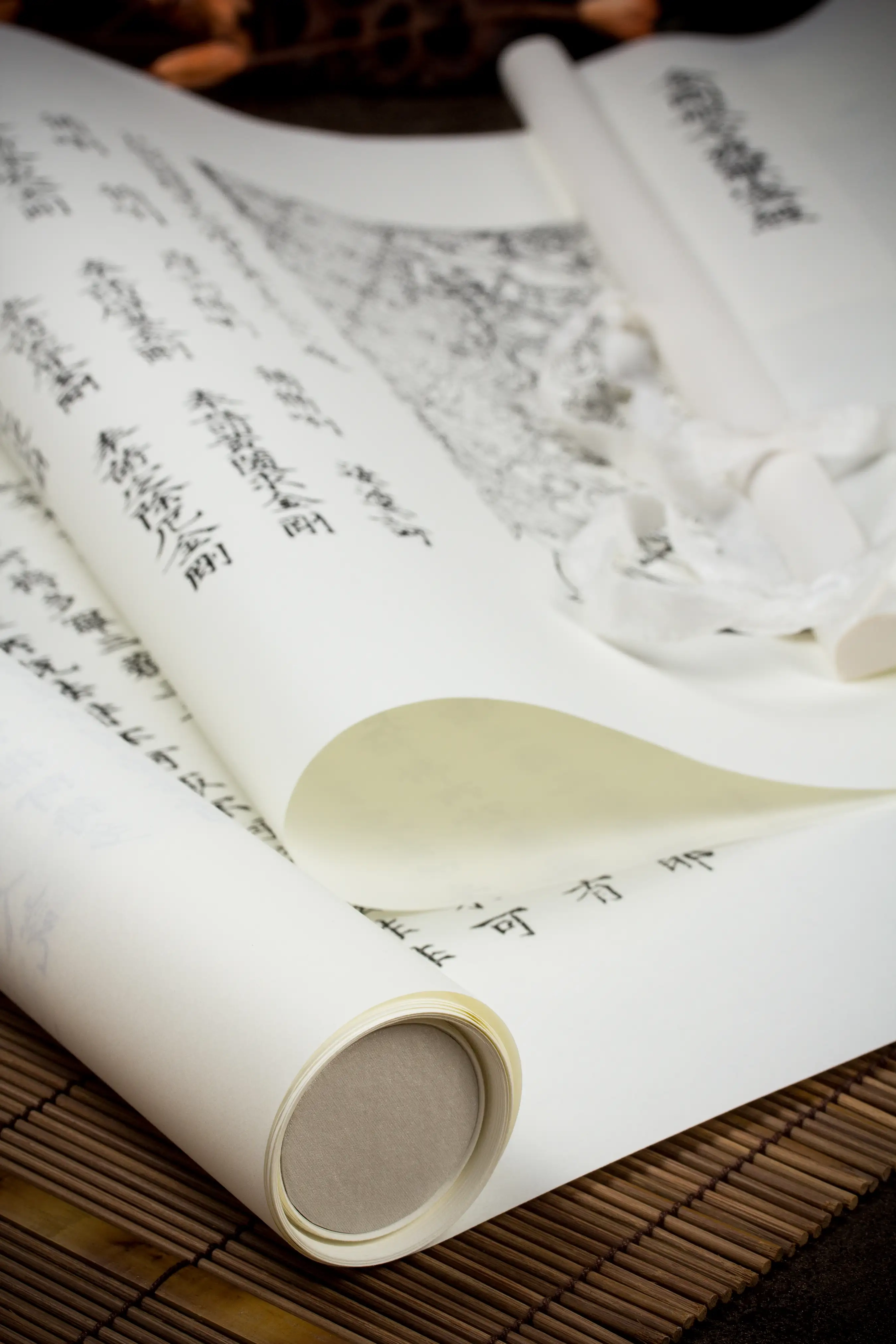 本產品長7,000x寬385mm捲軸式,採70磅米色道林紙單面黑色印刷,前後端裱進口裐布。外盒以傳統手工工藝木頭接榫方式製作,質感精緻莊嚴。