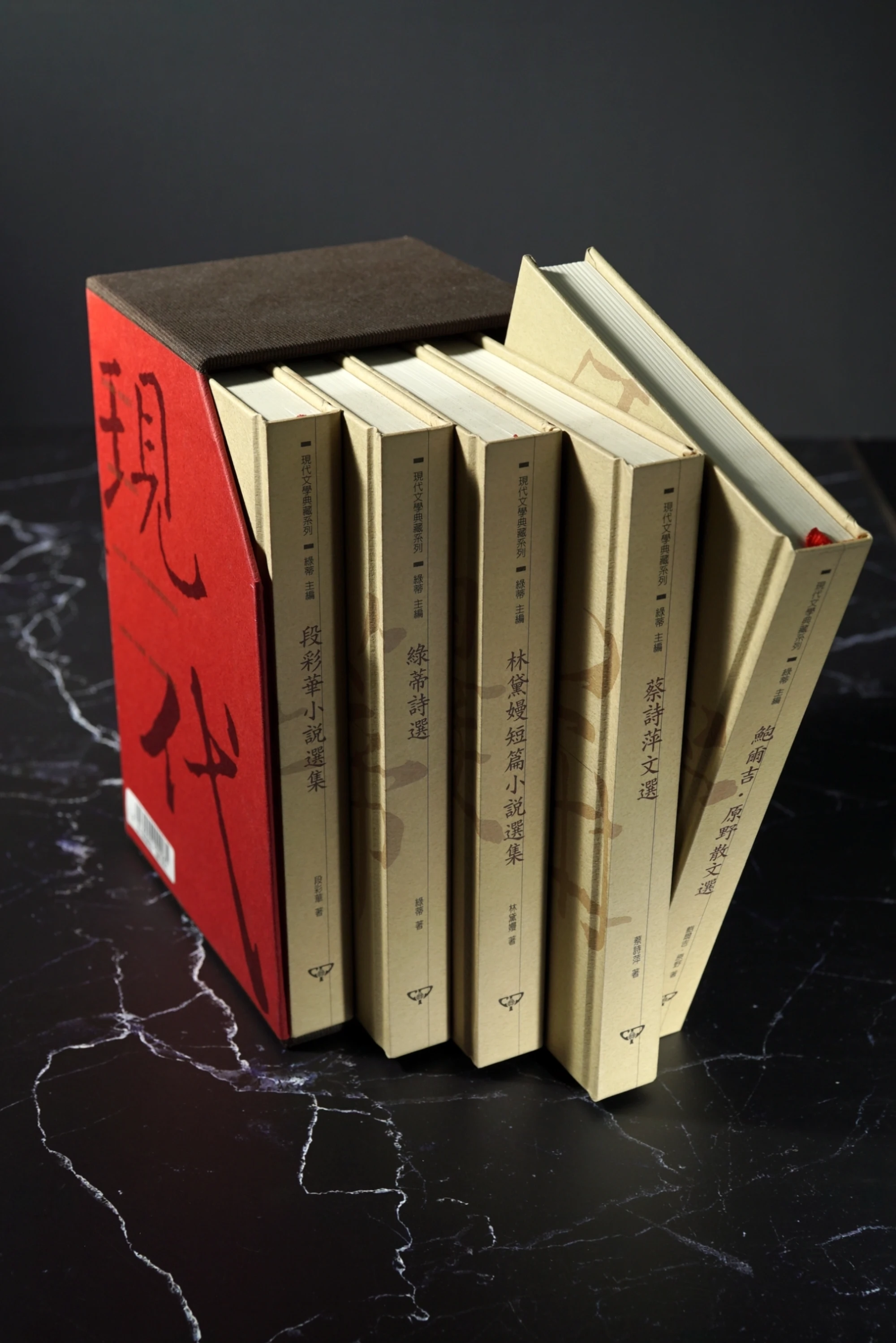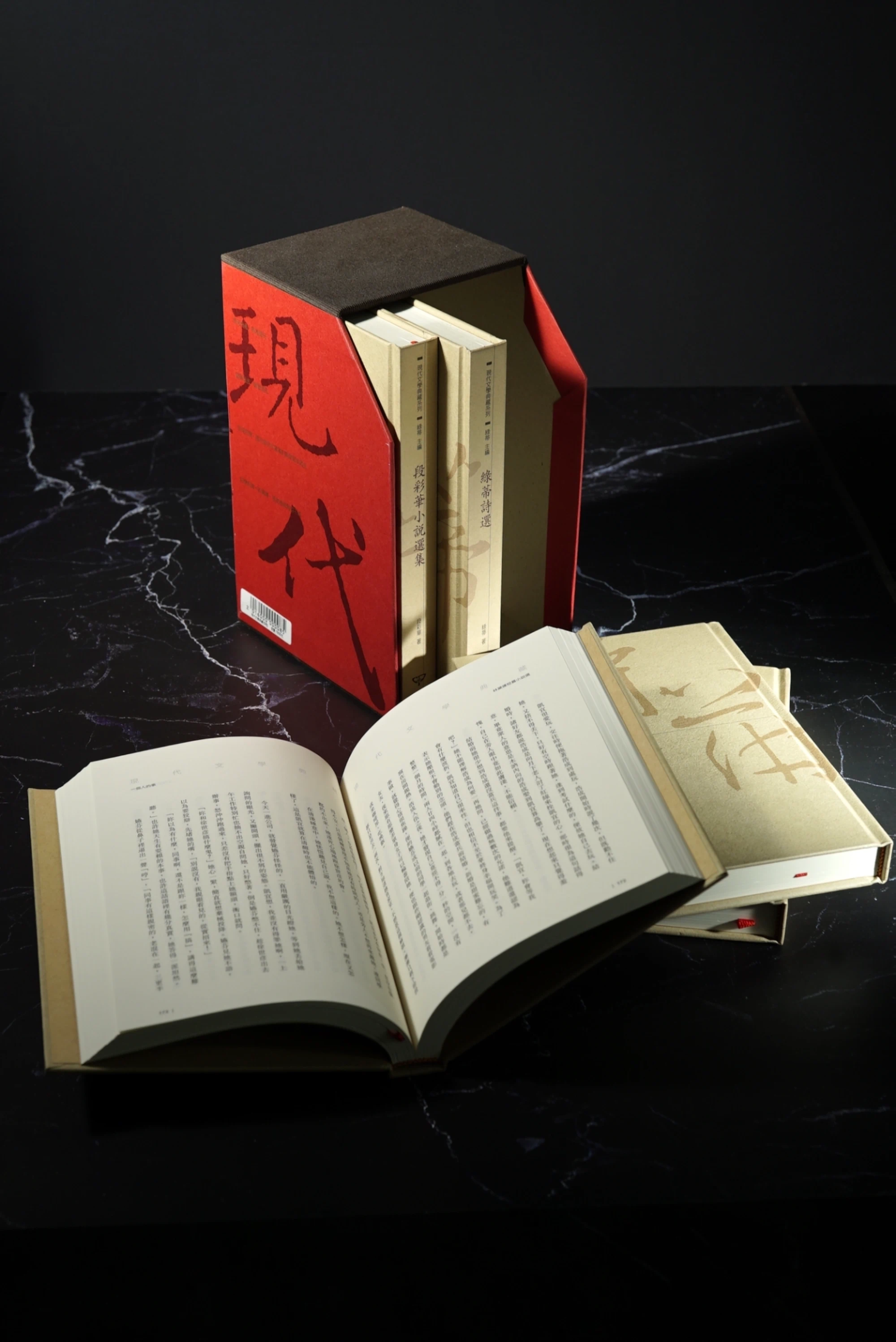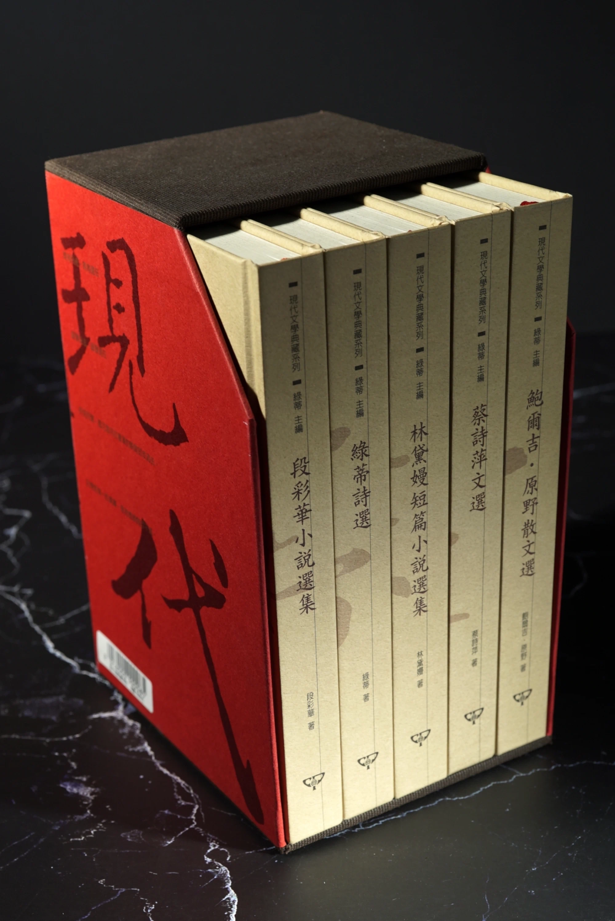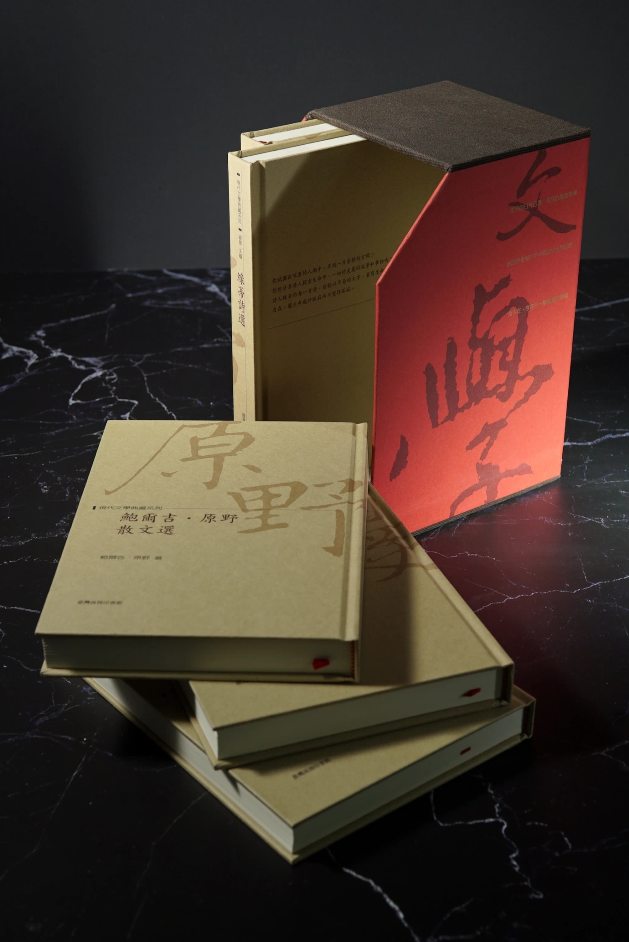 書盒紅色部份及5冊封面都採用彩迪美術紙,而不上光(膜)的大膽堅持,為的是手感及樸實的呈現。