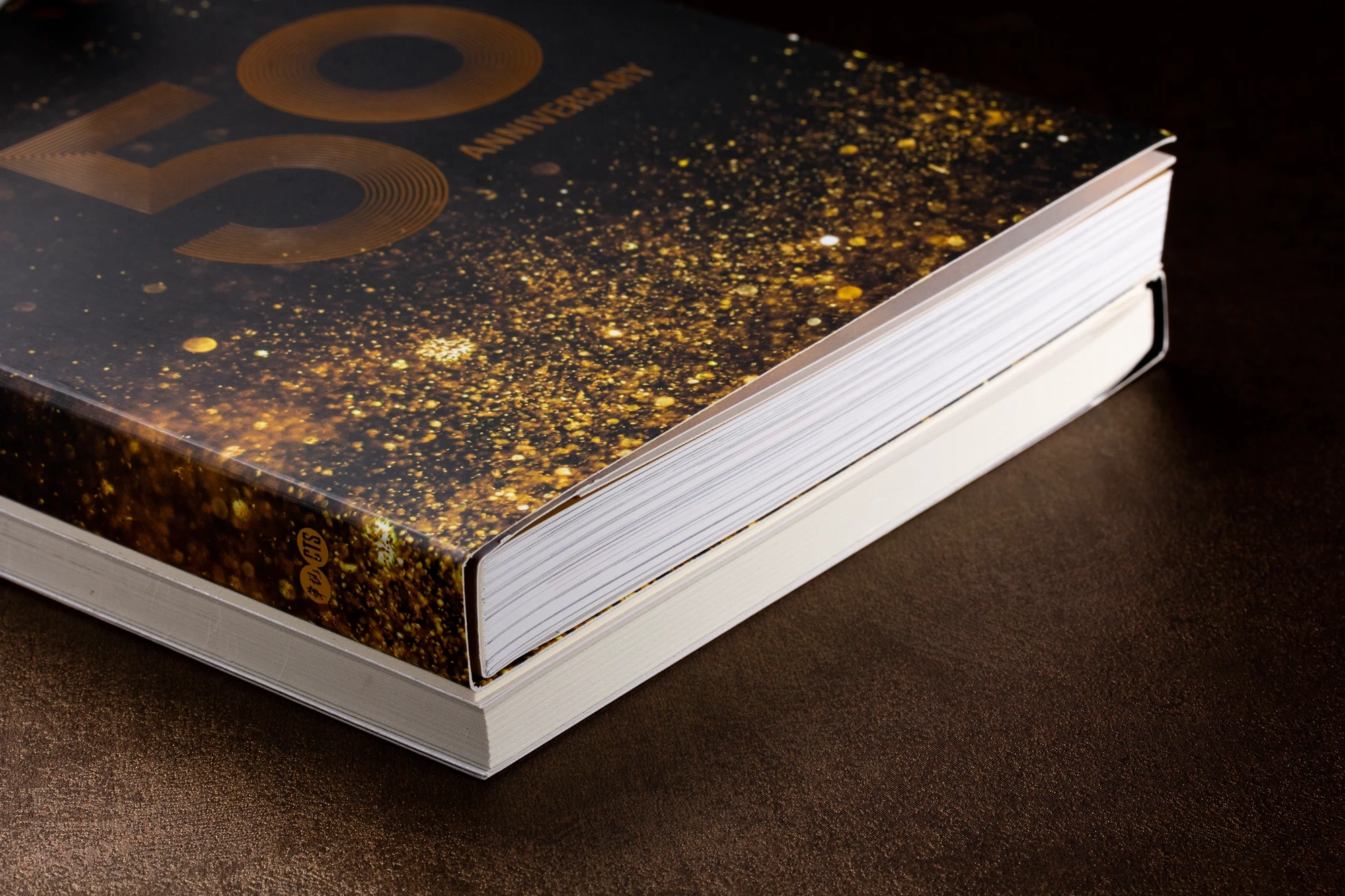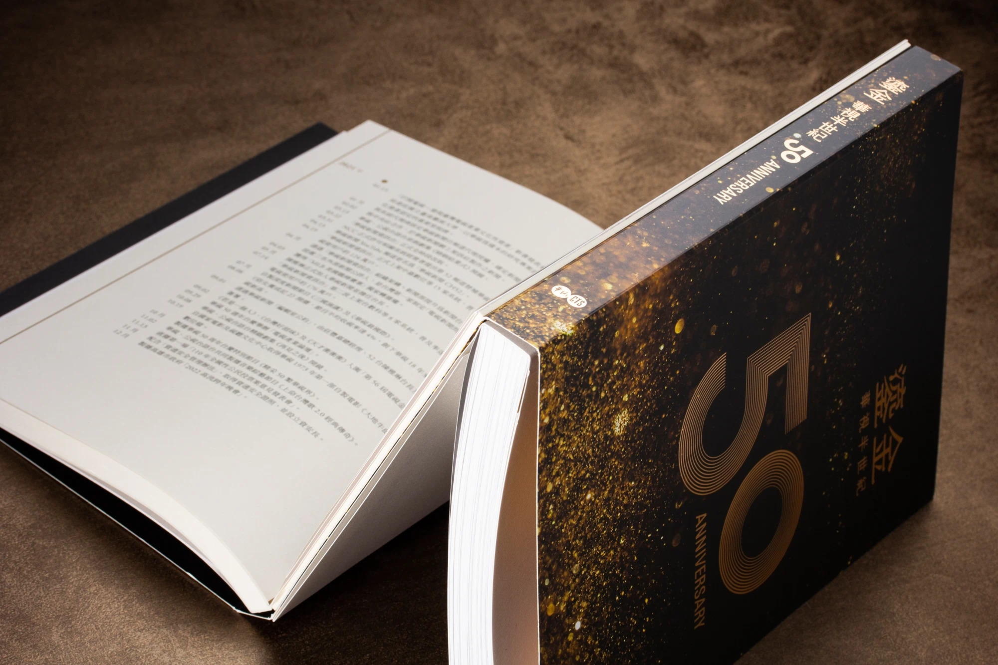 外封採用300磅雪面銅西,搭配代表半世紀的50字樣玫瑰金。