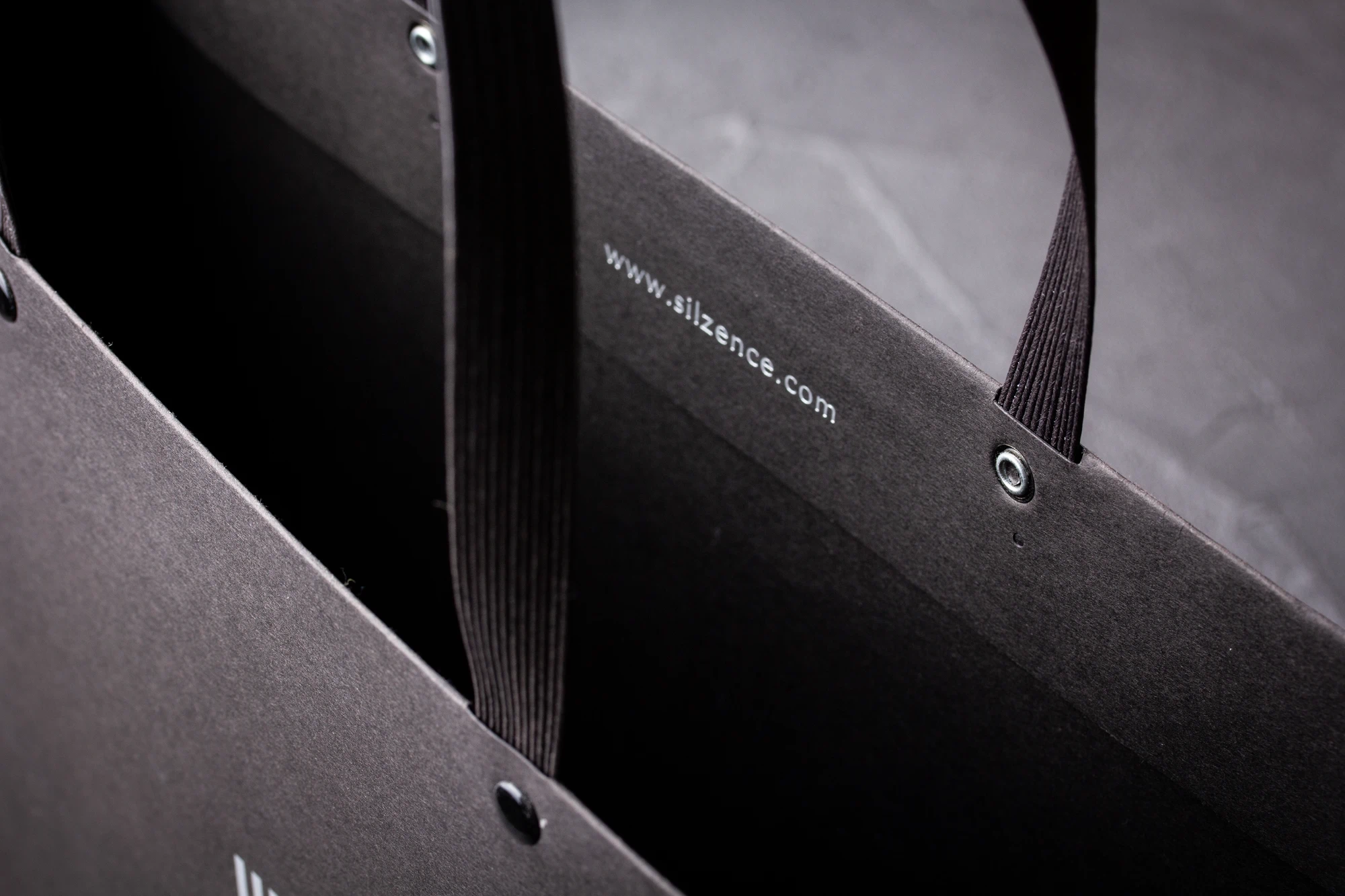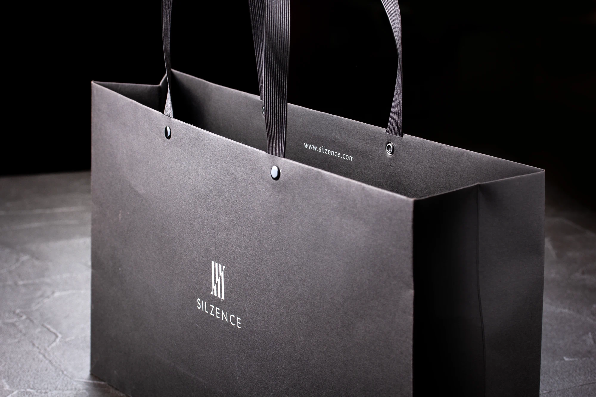 本體採用250磅進口黑卡製成的手提袋,採用無摺痕花底成形,兼具高耐重與印面平整性。